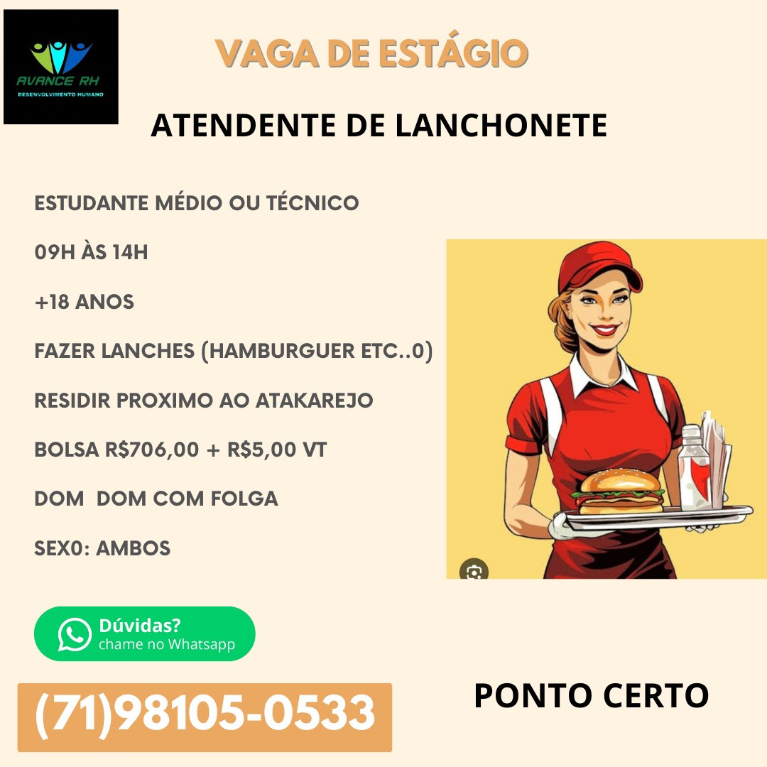 4. Estágio: Atendente de Lanchonete (Ponto Certo – Próximo ao Atakarejo)
