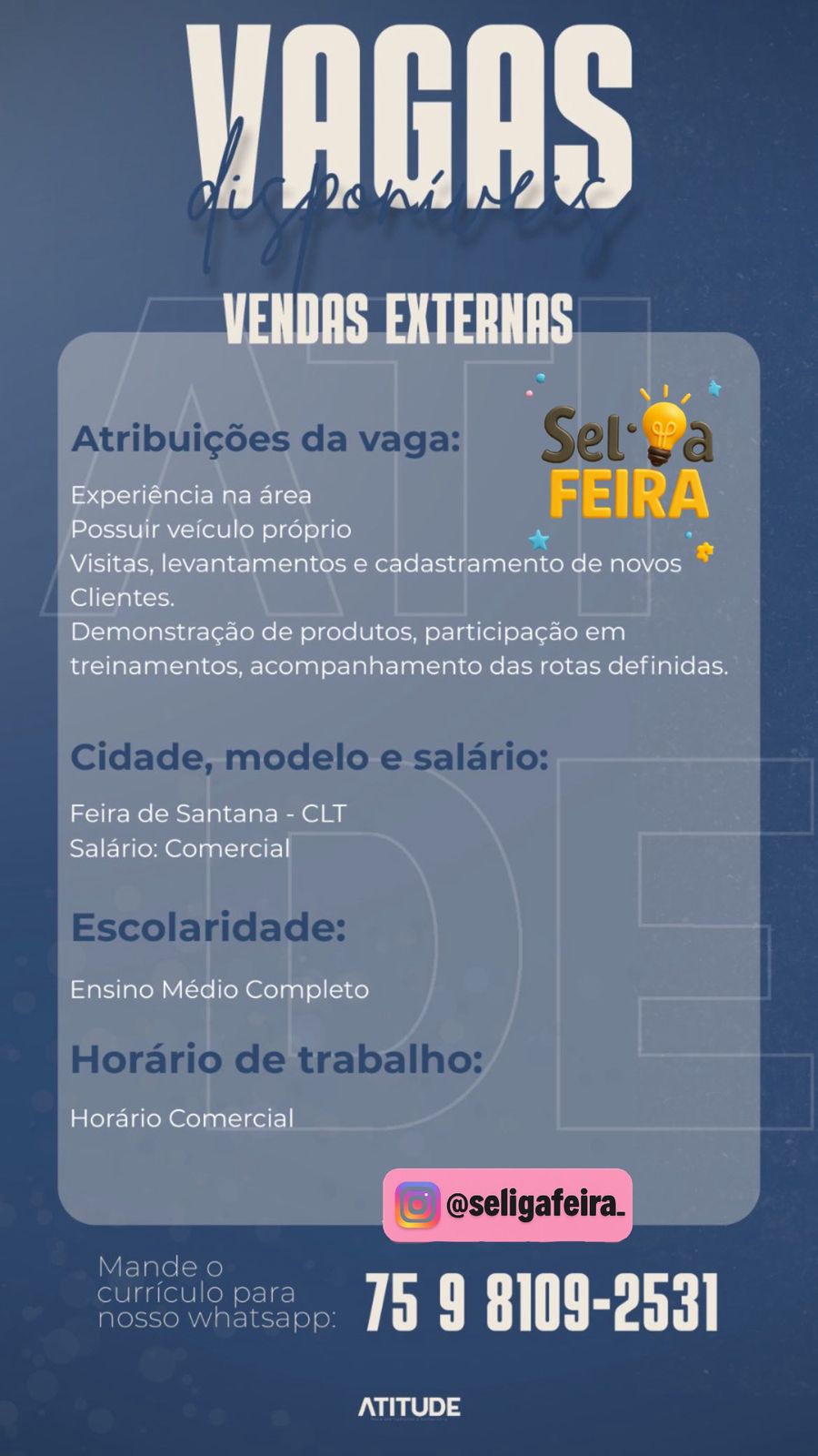 Atitude anuncia vaga estratégica para a região de Feira de Santana